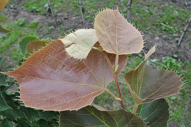 We finished our walk in a field where one finds other plants than oaks. One particularly attracted my attention. It was a lime, Tilia henryana. The species was discovered by Augustine Henry in the Chinese province of Hupeh and is believed to have been introduced by Ernest Wilson. This tree is remarkable for its finely toothed leaves. The specimen at Pavia was selected by Dirk Benoit and Philippe de Spoelberch at the Arnold Arboretum in 1997 and later named ‘Arnold Select’.