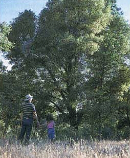 | McCreary and daughter Megan walk among the oaks in a photo published in California Agriculture Journal article "Urbanization Crowds Out Oaks" in September 1995 |