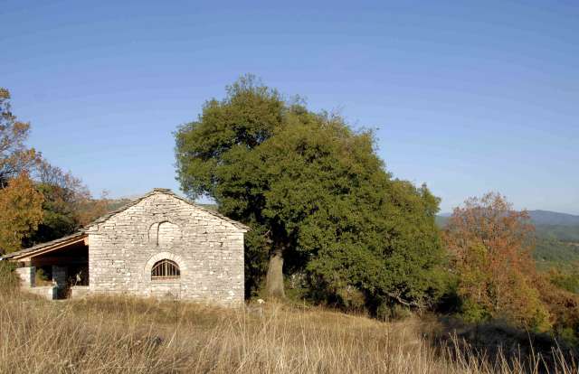 | Tree form of Quercus coccifera, possibly a hybrid. Vitsa, Epirus, Greece. (Photo: Gert Dessoy) |