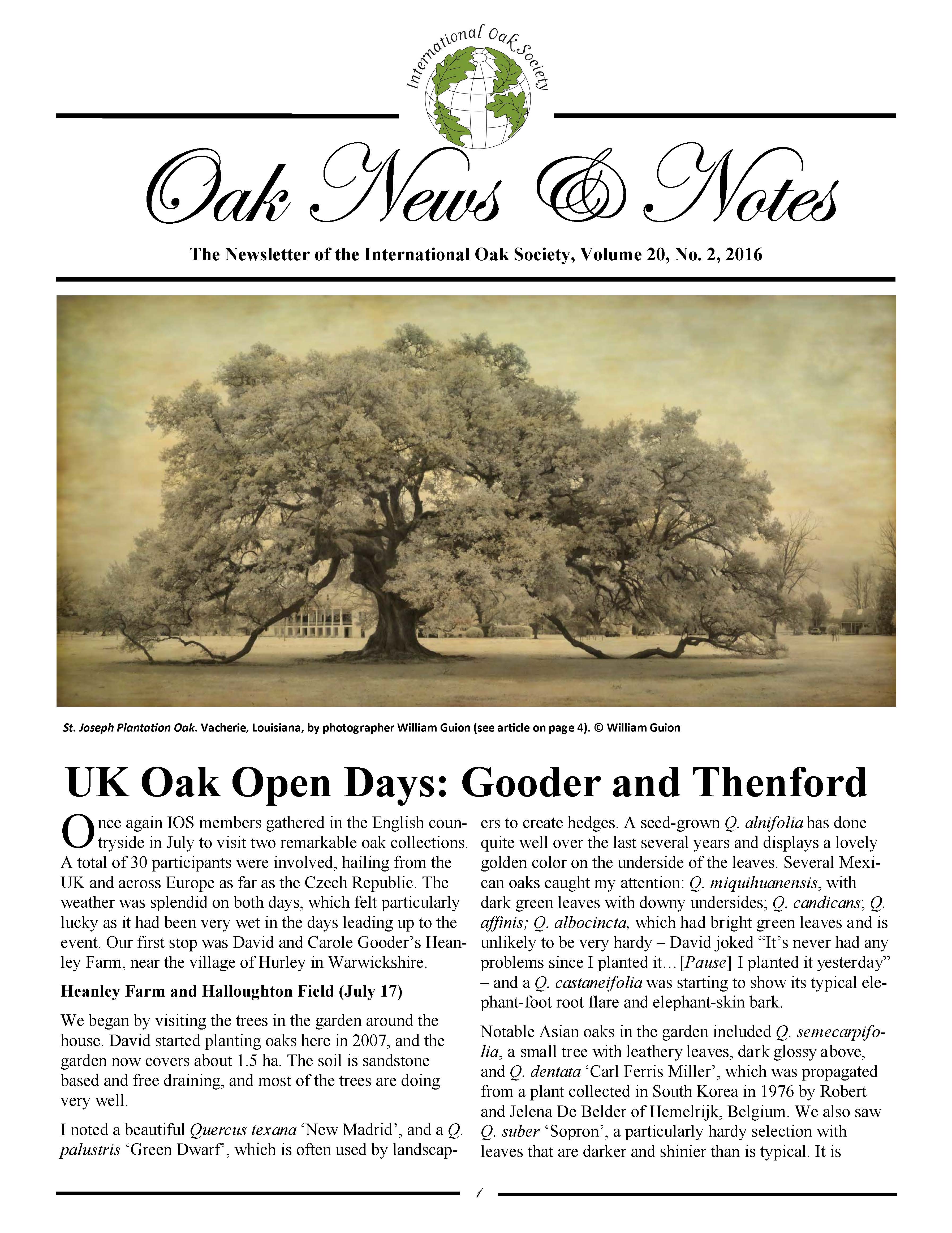 Oak News & Notes, Volume 20, No. 2, 2016