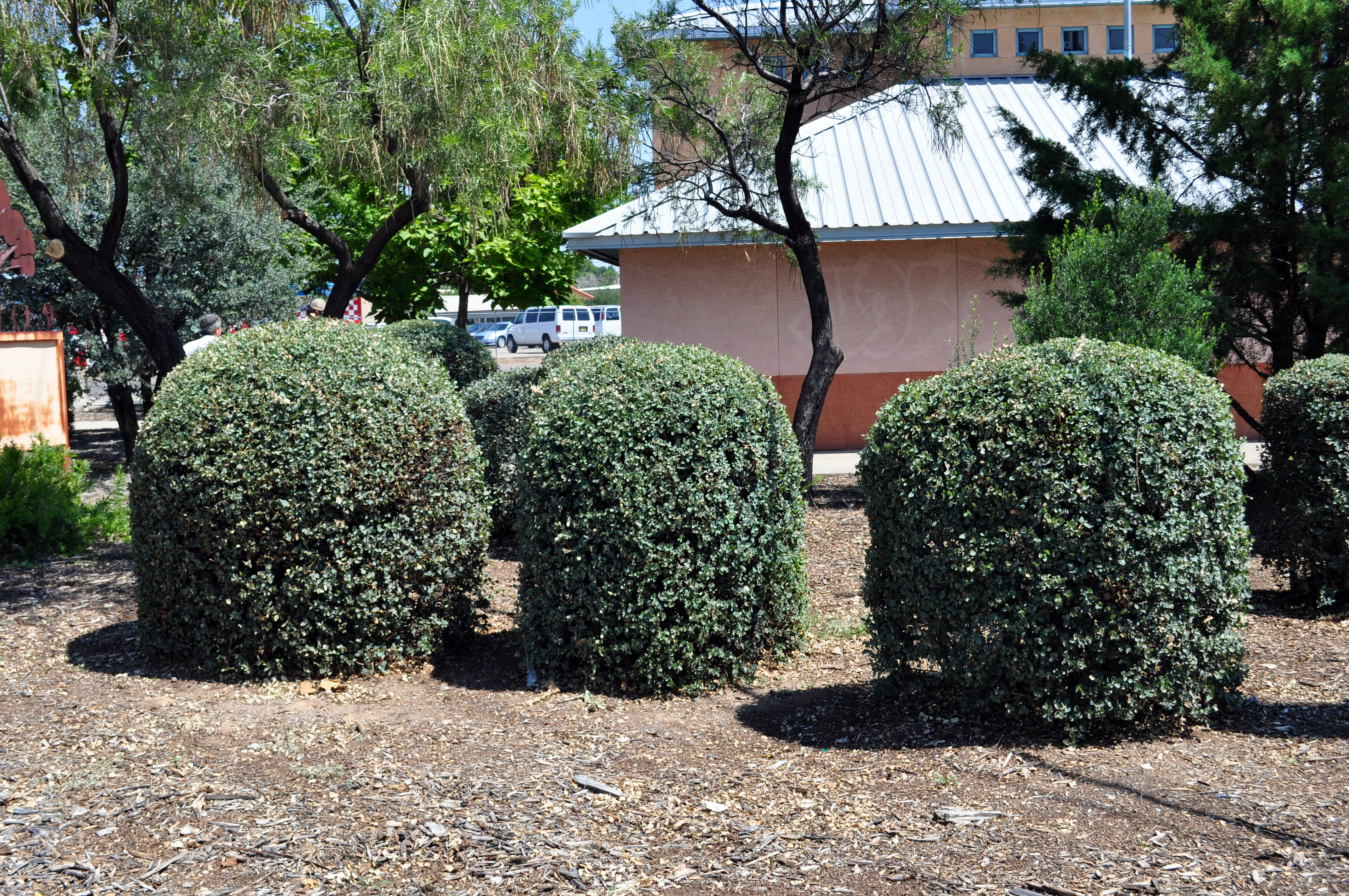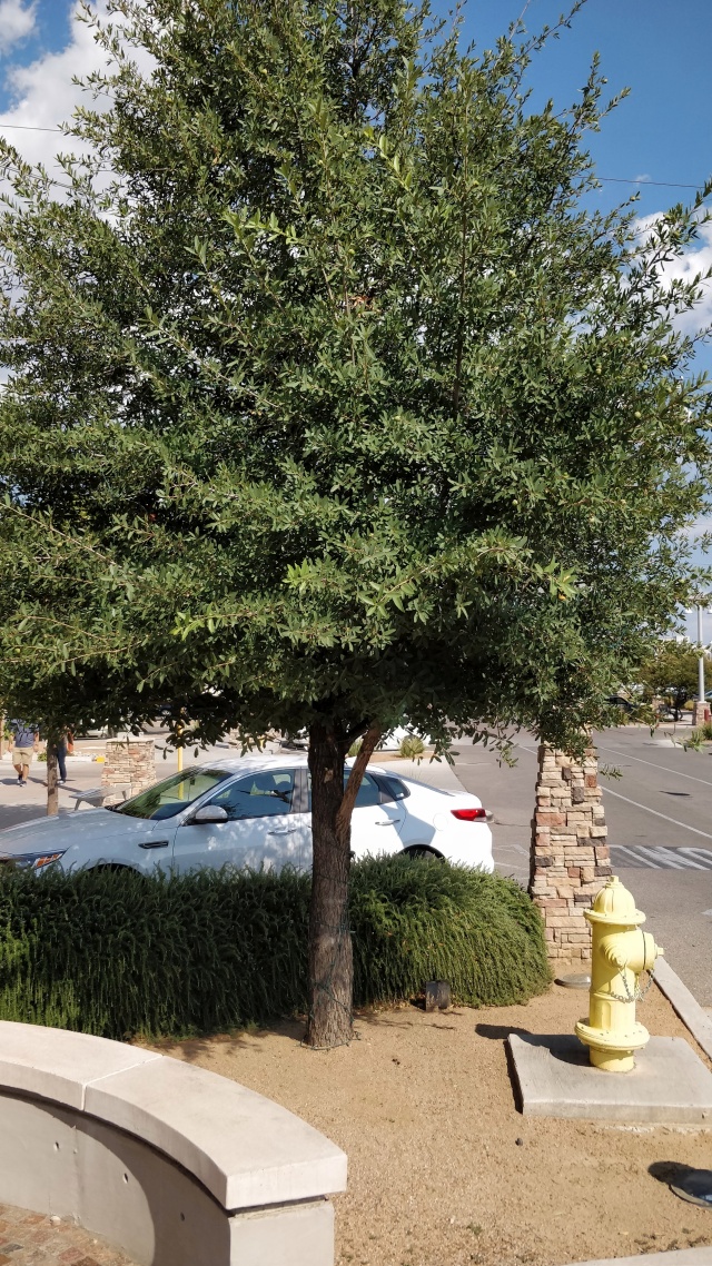 After our oak hunting trip through southern New Mexico, Michael Melendrez took us (Ryan Russel and me) to see oaks he had planted over the years in the cities of Los Lunas where he lives and Albuquerque, the state's largest city. We had already seen oaks that had been planted in Las Cruces. Michael included many oak species in the landscaping projects he has done. We have seen Quercus buckleyi (not native to New Mexico), Q. muehlenbergii, Q. oblongifolia, Q. rugosa, and Q. turbinella. The latter is not always treated with dignity by the city of Los Lunas as can be seen in the pictures here after.