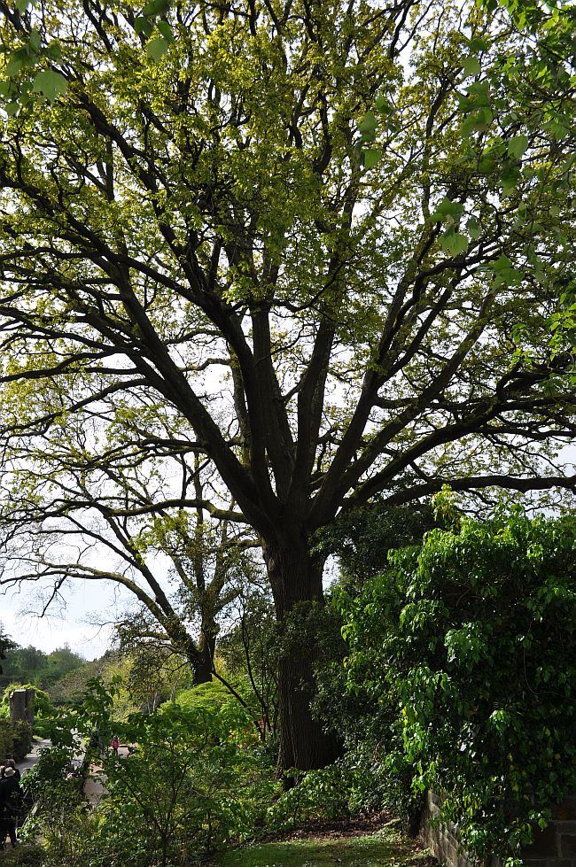Last Monday, I visited Roath Park in Cardiff, Wales with IOS member Tony Titchen and a small group of members of the International Dendrology Society (some of them also members of the IOS). The first sizable tree we came across was the UK champion Quercus ×andegavensis. Quercus ×andegavensis Hy is a hybrid between Q. pyrenaica and Q. robur (See our oaknames database). The tree was measured in 2004. It had a height of 24 meters and a diameter of 121 centimeters.