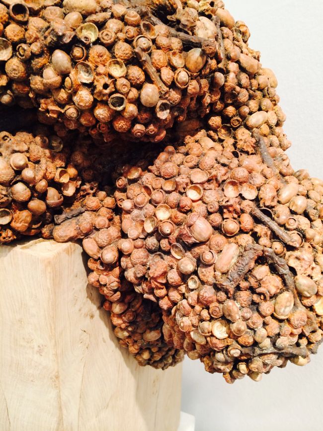 Last week I went to an Art and Antiques Fair and found the scuplture ilustrated here. The sculpture is called Love of Oak by Anne Gillespie. She has stuck acorns and twigs into resin and then cast the whole thing in bronze. It is quite weird because you reach out to touch expecting the feel of acorns and instead you get cold metal!