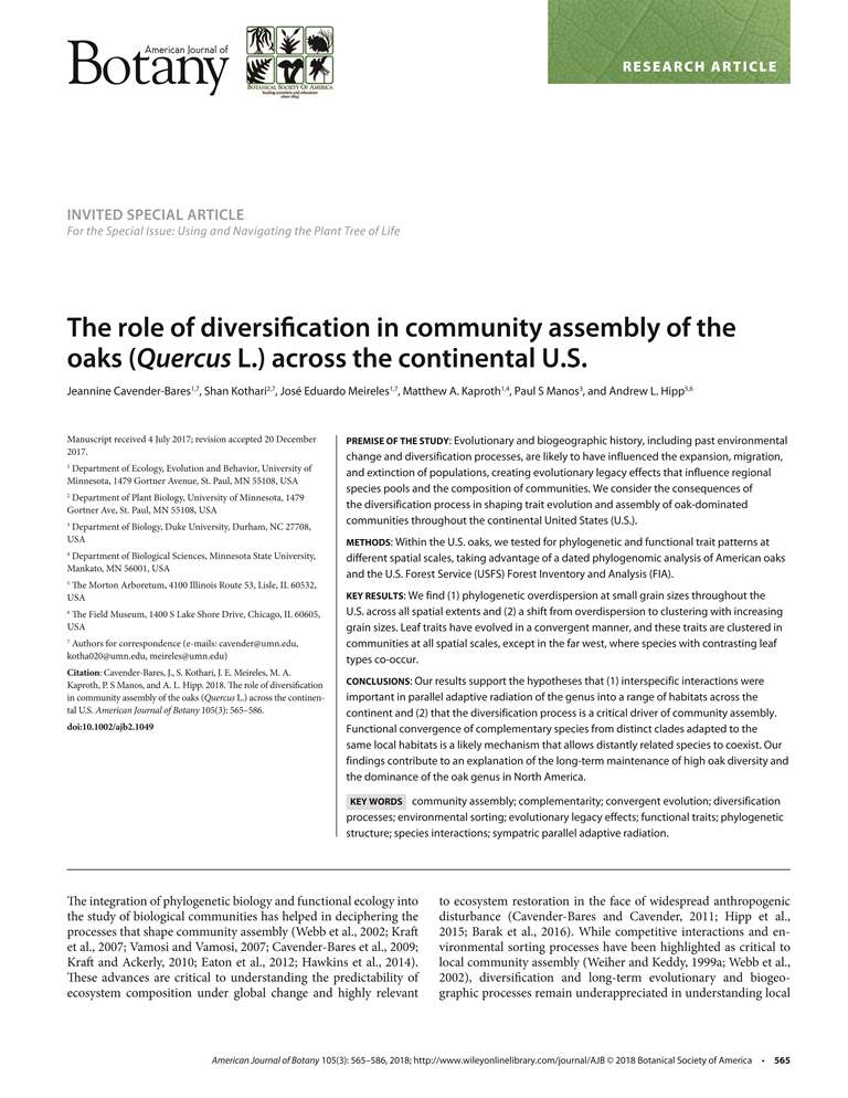 "This study brings our work full circle to questions Cavender-Bares and colleagues started addressing over a decade ago," said co-author Andrew Hipp, a senior scientist with The Morton Arboretum. "It illustrates how evolutionary biology can serve the interests of understanding and conserving plant communities."