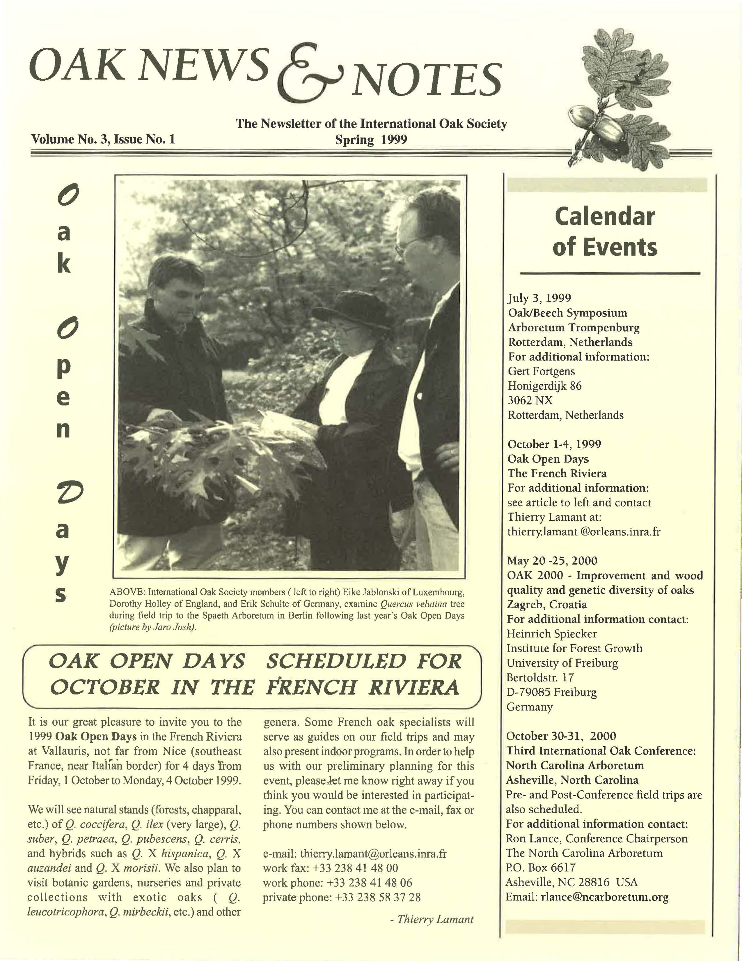 Oak News & Notes, Volume 03, No. 1, Spring 1999