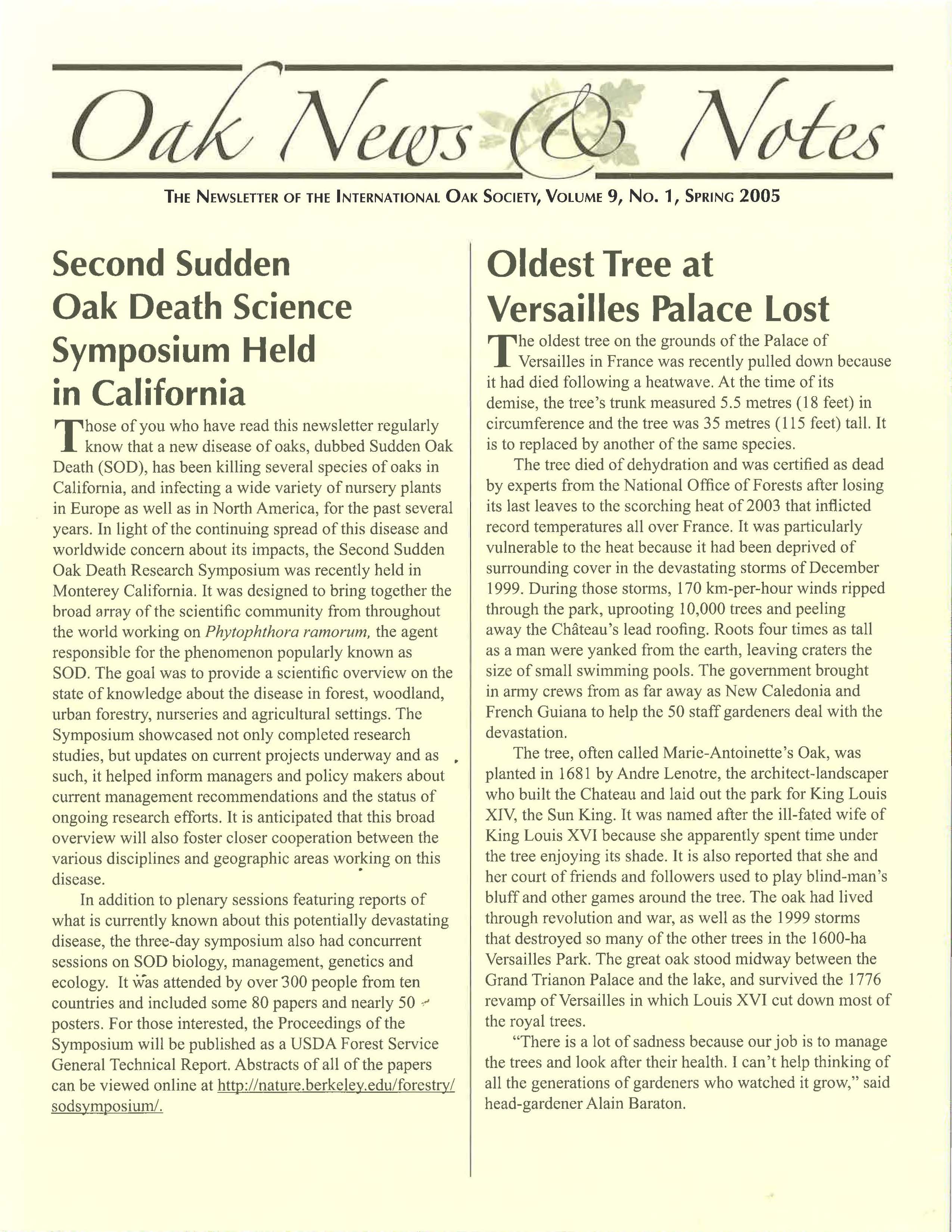 Oak News & Notes, Volume 09, No. 1, Spring 2005