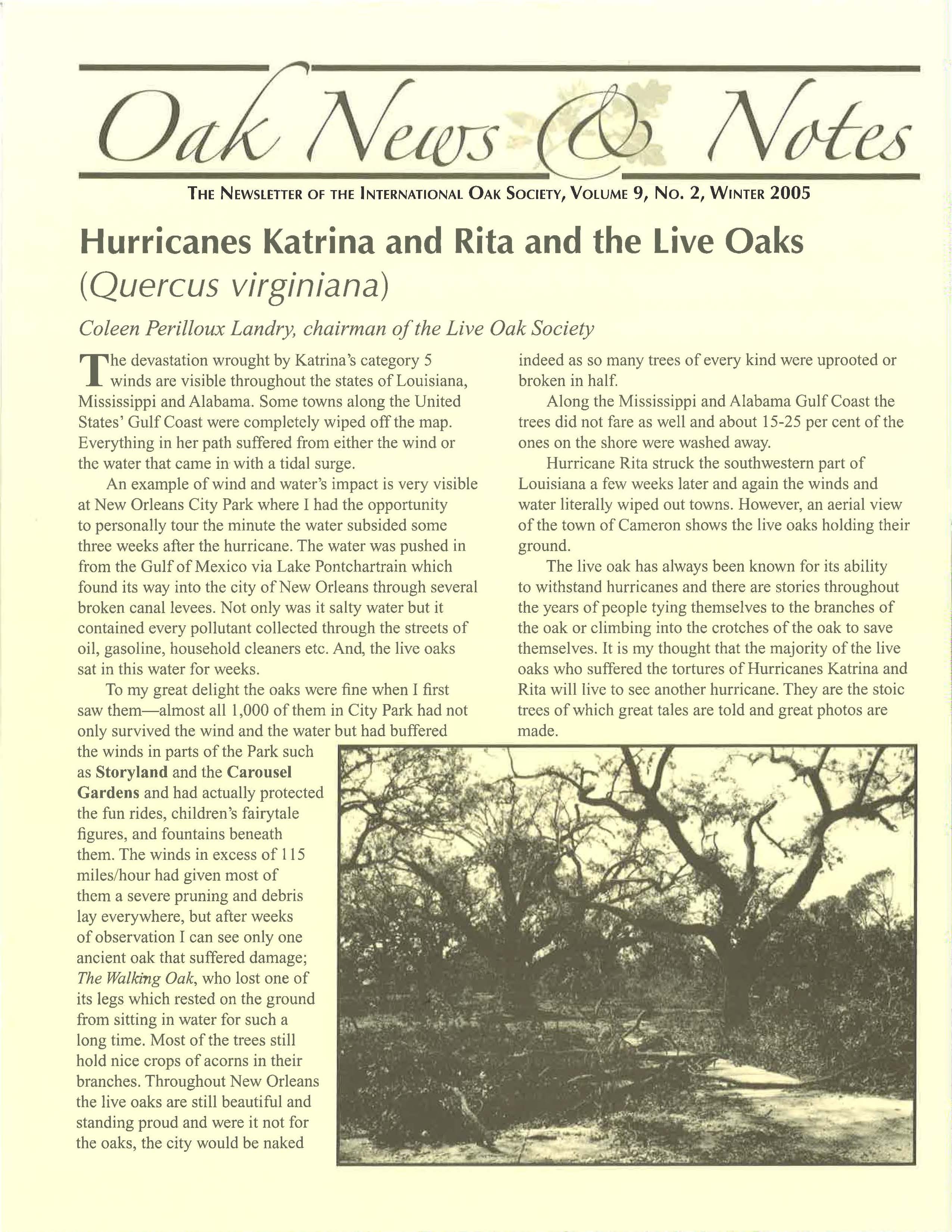 Oak News & Notes, Volume 09, No. 2, Winter 2005