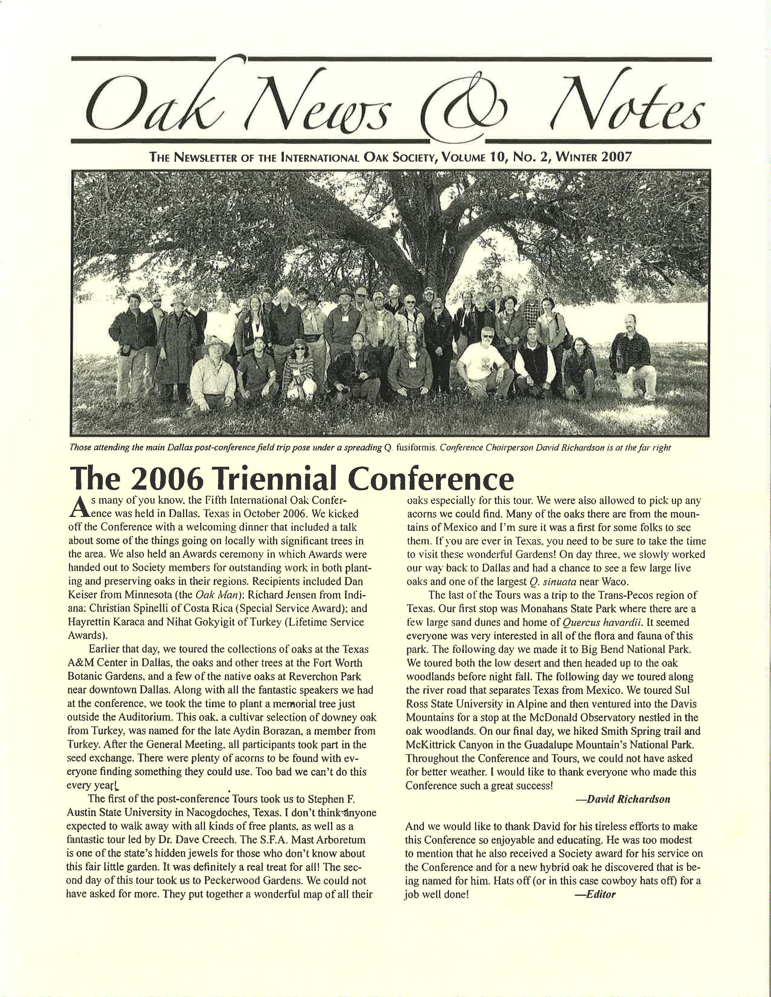 Oak News & Notes, Volume 10, No. 2, Winter 2007