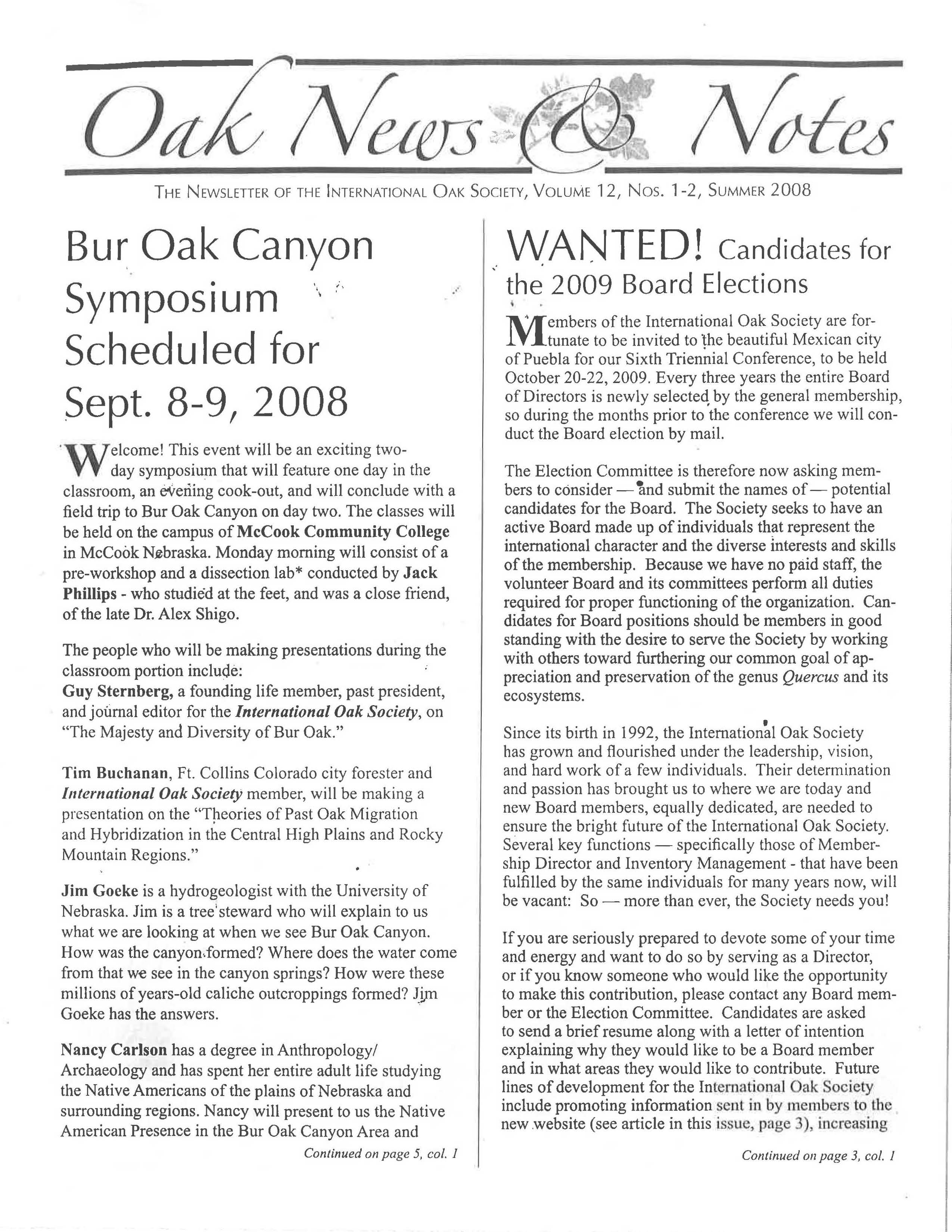 Oak News & Notes, Volume 12, No. 1-2, Summer 2008