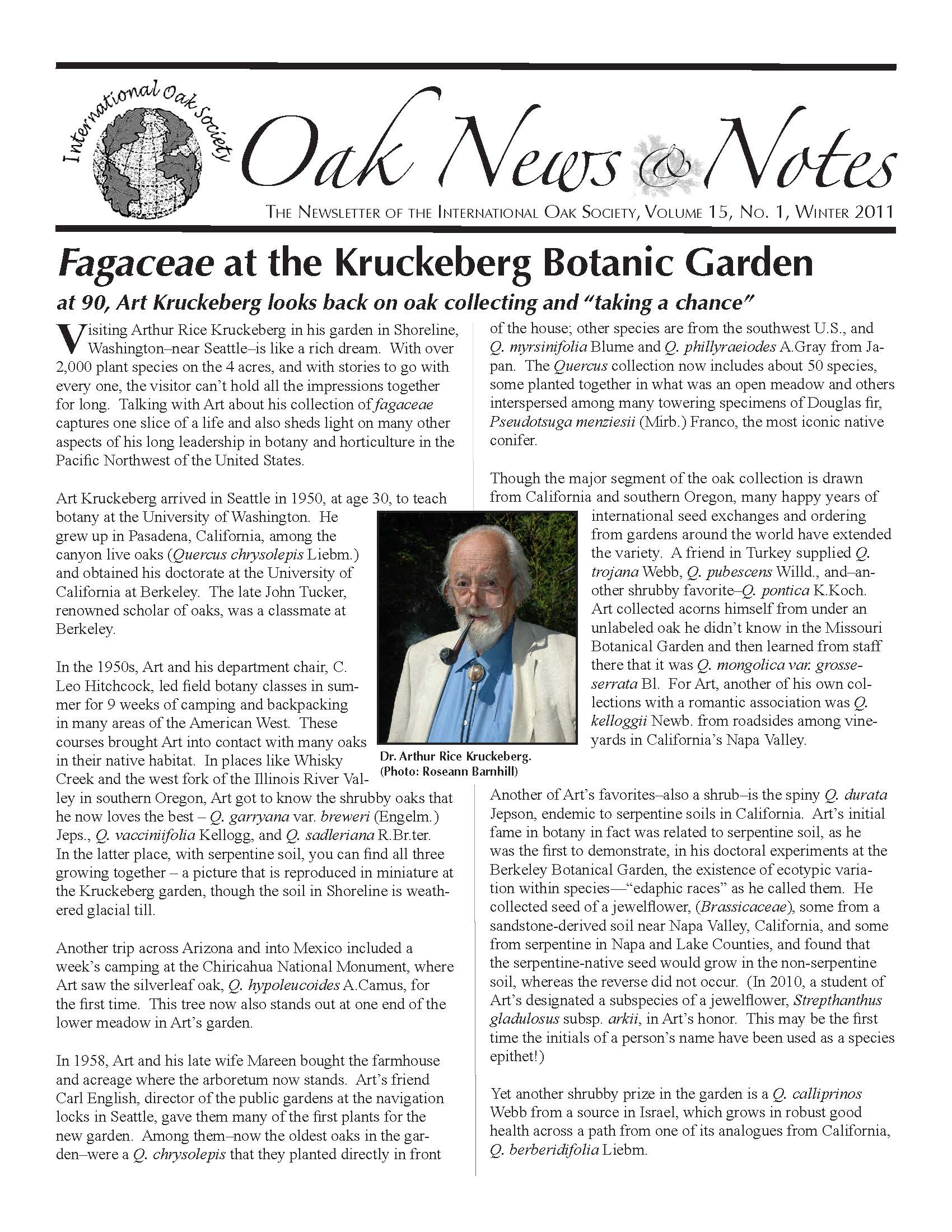 Oak News & Notes, Volume 15, No. 1, Winter 2011