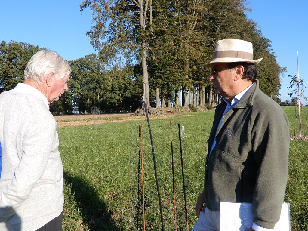 I’ve just been with the International Dendrology Society in Normandy, France (16-23 September) where we visited Chateau de Galleville. Here Arnaud Brunel has planted about a hundred young oak trees. He bought these from Pépinière de la Preille. They are all from seed and are arranged by continent: Europe, Asia, and the Americas. The spacing between them is about 10 m so should suffice in the future.