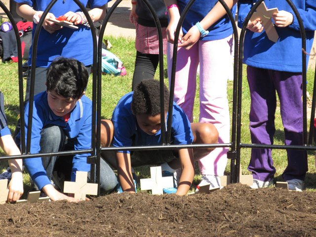 The War Memorial Oak was intended as a memorial to the Great War itself, and it is remarkable that those planting it were so aware of the importance this war would have on world history, even when it had barely started. On the occasion of the oak’s centenary, August 29, 2014, a hundred school children planted a seedling grown from an acorn of the original oak, about 150 m away, thus continuing the gesture of memorial and remembrance. The oak continues to serve its purpose, as those who planted it hoped, commemorating “during centuries to come… for many generations of their children’s children the greatest War Year and the most critical time of national trial that the world had ever known.” Long may it continue to do so; as Sir Henry Galway said in his address at the planting ceremony: “Planted in war, might the oak flourish in the years to come during continual peace.”[3]